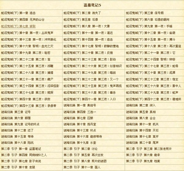 以下是本《盗墓笔记》系列全集的详细目录...........