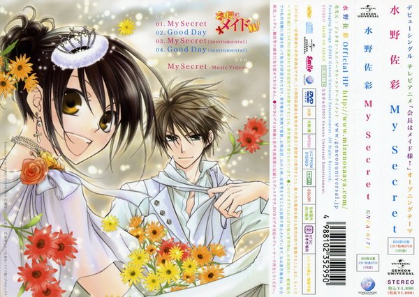 商品番号 GNCA-171 JAN 4988102352950 メディア マキシシングル CD 組枚数 2 価格 1890円(税込) 発売日 2010/05/26 内容 TBS・MBS・CBC・BS-TBSにて4月より放送開始の「会長はメイド様!」。女性に圧倒的な支持を得ている水野佐彩がオープニングアーティストとして、待望のデビュー!! 初回限定盤は、「My Secret」プロモーションビデオを収録したDVD付きの2枚組。「会長はメイド様!」原作・藤原ヒロによるイラストを使用したデカ帯付き。