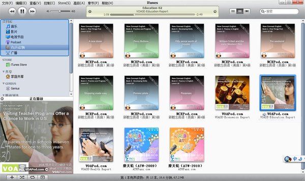 绝无仅有,史无前例,匠心独具,仅在 VeryCD 全球首发——可以让 iPod、iPhone、iPad(4.2+) 同步显示字幕并可逐句跳转的《慢速VOA(教育报道)》互动英语学习有声读物(M4B有声读物格式—— iPod、iPhone、iPad(4.2+) 直接使用,无需安装任何应用!)——注:电脑使用请下载安装QuickTime,其他手机可能需要安装第三方应用才能使用。