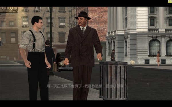 在游戏中,你会发现1940年代的纽约,真的是一个年轻的黑手党成员大展身手的好地方。游戏的一开始,Luca Brasi会做你的向导,他会告诉你一些最基本的知识,比如如何杀人勒索什么的。接着你要执行几个任务,大多是从一个科莱昂家族的据点跑到另一个据点,整个过程就像《侠盗车手》以及杂七杂八的模仿者一样。你将有一个小地图来告诉你,你应该去什么地方,你也可以把一个街头车手的交通工具抢下来,以便走得更快一些。不过惹毛了警察,他也会像GTA中的警察一样来追你,所以无论是抢车还是乾别的,都要躲警察远点。