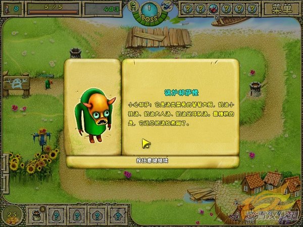 土豆怪兽(Monster Mash)是一款塔防(Tower defense)游戏,故事发生在原本安静的蜿蜒山谷中,突然袭来的怪物打破了村庄的宁静,玩家必须利用地形打造防御工事来保卫村庄.