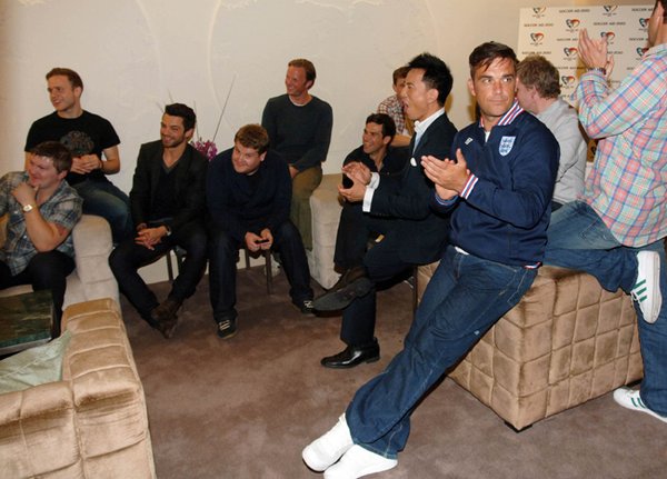 Front Row: Shane Filan, James Kyson-Lee (From Heroes), Michael Sheen, Kenny Dalglish, Ryan Giggs, Gethin Jones, Nicky Byrne.