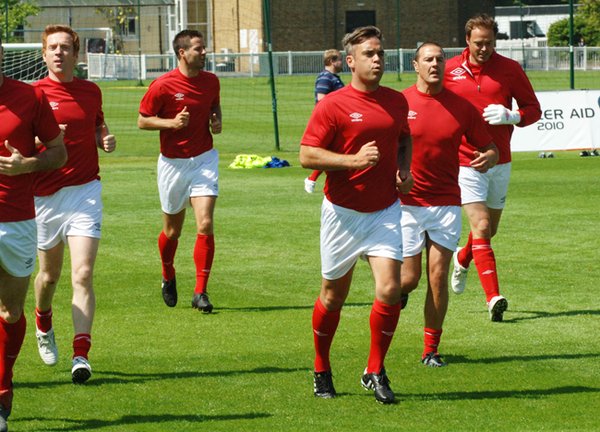 Front Row: Ralph Little, Ricky Hatton, Paddy McGuiness, Robbie Williams, Harry Redknapp, Teddy Sheringham, Bradley Walsh, Jamie Redknapp, Olly Murs.