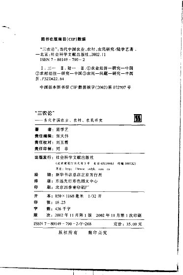 : “三农论”——当代中国农业、农村、农民研究
