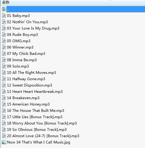 最新一辑NOW又来了,这次包含了最近几周的冠军单曲Rude boy, OMG, 以及最近红遍全美的Justin Bieber的baby, B.O.B的nothin‘ on you,ke¥ha的your love is my drug,摇滚方面则有最近的大热单曲breakeven,以及lifehouse新专辑首打单曲halfway gone,加上豆豆的新单曲imma be,Iyaz改编自Janet again的Solo等等,内容还是很多的。