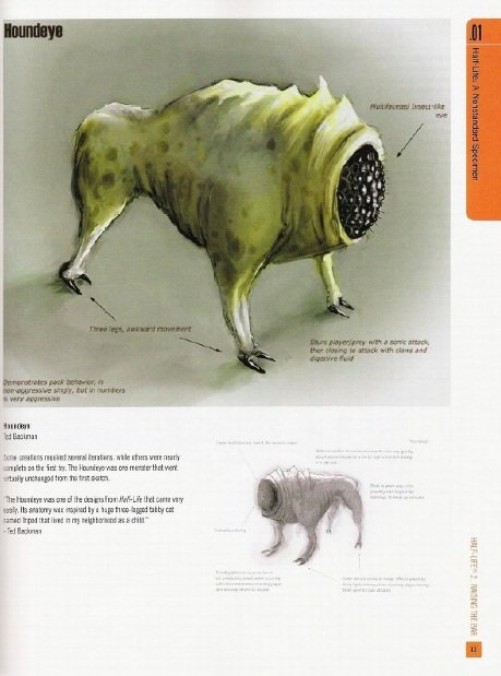 ----------------------------------------------------- P5 Gabe Newell的前言 当我写这个的时候,我经历了世界上最糟糕最惶恐的阶段。在花费6年时间和数以万计的美元之后,在经历入室盗窃及随之而来的诉讼之后,在经历了结婚,生子,离婚,死亡之后,我们即将推出Half-Life 2(正确翻译应该是半衰期2,国内主流翻译成半条命2其实是一种错误的翻译,译者注)。而读者你,知道Half-Life 2的发售会怎样进行,因为你读过评论,看到过人物模型,听说过它获奖或者它的不足,最重要的是,你已经玩过了制作完成的游戏。这些事我们没有做过,是否我们创造出了一个Half-Life的成功的继承者?是否我们达到了玩家期望的高标准?是否我们胜利完成了?你知道,但我却不知道,此刻,看起来这样对我非常不公平。 另外一个看起来对我十分不公平的事是,我从Valve那获取的荣誉和它获得成功是不成正比的。我是队伍的一部分,我所做的这部分看起来就如同公司的脸面(例如,写前言)。我希望你能从这本书中知道一些事情,那就是更清楚的感知到做一个游戏要涉及到如此多的工作,需要如此高的创造力。或许,有些auteurs制作的游戏,如同被大批顺从的仆人包围,我可不愿意Half-Life 2会被制作成那样。对于队伍中的每个人,不论失去了谁,我都可以列举出由此而损失的游戏元素。 我们也是巨大的游戏社区的一部分,作为一种媒介,游戏所独具的一个特点是你必须创造一个可以和玩家互相合作的游戏环境。多人游戏只有你在和别人一起游戏时才具有乐趣。单人游戏就像是你和游戏中的主角合演的电影,在这里,主角是没有事先准备好的台词的(意思就是游戏很自由)。游戏引擎不仅仅是游戏本身的舞台,也是众多MOD(Modification的缩写,意为玩家修改或编写的游戏程序)的舞台,它们延展了除了游戏本身之外的乐趣。 调查1:非正常物质 从头开始创造一个王朝可不是一个可以轻率进行的任务,在某种意义上,这是Gabe Newell和Mike Harrington在1996年所要面对的挑战。退休的微软程序开发员,Gabe和Mike对于未来的游戏发展有着共同的远见,但他们中任何一个人都不知道彼此的梦想能带领他们走多远。从最初开始,他们的路线是走敢于冒风险的标新立异和稳固的商业规划的基金,从ID Software,Quake与Doom的创造者那里获取Quake引擎是一个正确的,毫不费力有理由的决定。这是一个理性的选择,使得可以免于做那些天花乱坠的广告宣传,而在华盛顿州西雅图郊区安静的工作。开始制作简单视觉界面的快节奏的充满大量与外星怪物战斗的第一人称射击游戏是非常必要和有道理的。唯一无法明显预知是否安全或者明智的事是从Quake的MOD社区招募了大量充满激情的公司的第一批员工。年轻的程序员和关卡设计员白天去快递披萨,晚上制作怪兽遍布的夜总会DM地图和打破常规的DM地图(DM:死亡模式)。从最初开始,Valve利用游戏社区的本质,鼓励并吸收直接创造力,它们来自于那些非常热爱游戏,情不自禁而无法自拔的人。 P11 Greg Coomer Prospero是Valve早期游戏的一款,原先计划在Half-Life发布后不久发布。这款游戏强调的是探险,复杂的故事轴线,基于“psionic”力量的战斗。Prospero中的主角在游戏早期开发中经历了一系列设计上的变更. 当Quiver随着设计逐步取代了Prospero的一些初始的目标后,Prospero开始变成大规模的多人游戏。在线销售,服务器浏览器,a friend finder,以及其它那些开始研发Prospero时的雄心并没有完全地破灭,而是找到了自己的归宿,并最终成为了Half-Life以及Steam。 P12 关于Quiver中生物的概念来由 HL原始设计时代号Quiver,是关于史蒂芬-金的同名著名小说“迷雾”的,小说中怪物从“箭头”军事基地蜂拥而出。同时Quiver这个名字也容易使人联想到它的小堂兄--Quake(Quiver:微颤, 抖动;Quake:颤抖,震动)。当HL这个名字被敲定的时候,它早已经具备了明显区别于同时期其它游戏的鲜明特征。 P13 HL foes 4种HL早期敌人:暗杀者,brainboy with a mind-gun,屠夫,女士兵 P14 Houndeye Ted Backman 一些生物的制作历经了反复尝试,而其它的一些在第一次尝试后就几近完成。 Houndeye事实上是第一次草图完成后就没有怎么更改的一种怪物。 Houndeye是HL中几种设计起来很简单的怪物中的一个,它的原型来自一只巨大三脚斑猫(受它激发创造了Houndeye),这只猫叫做Tripod(三脚架),是我小时候邻居家的一只猫。 P15 Big Mama & Muddy Ted Backman 从开始时这两种生物就有Strong art direction 和清晰的目标,由于比起“标准”的游戏怪物它们体型庞大而又那么另类,所以它们的人工智能将十分复杂。 Big Mama (严格说gonarch)是猎头蟹的最终生命形态,极少有猎头蟹能发展到这个形态,所知更少的是这种形态的变异会在什么时间怎样发生。HL制作期间,办公室中,设计是一个竞争激烈的比赛。 有时候我们就那样无目的地坐着,万分疲倦,突然某人冒出一个愚蠢的主意,例如:为什么我们不给一个20-foot-tall的装甲蜘蛛安上一个巨大的睾丸?就这样,Big Mama诞生了。不过其它我们创造的怪物来自于gameplay而不是疯狂的想法,制作怪物远没有那么简单。 P16 Kingpin & Fast Walker Ted Backman 不管角色的设计看起来多么引人入胜,如果没有有说服力的人工智能和清晰地游戏目的,就算再杰出的设计也不会写到未来的名单上。我们希望Fast Walker会变成爱上Gordon的同盟,因为在战斗中后者不经意的提供了所有新鲜的食物。Fast Walker会发出警报,给Gordon下