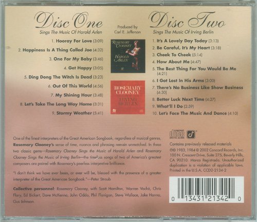 这张双CD的专辑是Concord Records于2002年重新再版发行的Rosemary Clooney于1983、1984年出版的两张翻唱专辑《Sings the Music of Harold Arlen》、《Sings the Music of Irving Berlin》。