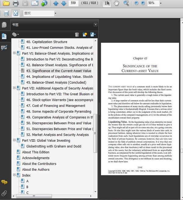 : Part 1 Survey and Approach Introduction to Part I: The Essential Lessons 1. The Scope and Limits of Security Analysis. The Concept of Intrinsic Value 2. Fundamental Elements in the Problem of Analysis. Quantitative and Qualitative Factors 3. Sources of Information 4. Distinctions Between Investment and Speculation 5. Classification of Securities Part II: Fixed-Value Investments Introduction to Part II: Unshackling Bonds 6. The Selection of Fixed-Value Investments 7. The Selection of Fixed-Value Investments: Second and Third Principles 8. Specific Standards for Bond Investment 10. Specific Standards for Bond Investment (Continued) 15. Technique of Selecting Preferred Stocks for Investment 16. Income Bonds and Guaranteed Securities 17. Guaranteed Securities (Continued) 18. Protective Covenants and Remedies of Senior Security Holders 19. Protective Covenants (Continued) 21. Supervision of Investment Holdings Part III: Senior Securities with Speculative Features Introduction to Part III: “Blood and Judgement” 22. Privileged Issues 23. Technical Characteristics of Privileged Senior Securities 24. Technical Aspects of Convertible Issues 26. Senior Securities of Questionable Safety Part IV: Theory of Common-Stock Investment. The Dividend Factor Introduction to Part IV: Go with the Flow 27. The Theory of Common-Stock Investment 28. Newer Canons of Common-Stock Investment 29. The Dividend Factor in Common-Stock Analysis 30. Stock Dividends (see accompanying CD for this chapter) Part V: Analysis of the Income Account. The Earnings Factor in Common-Stock Valuation Introduction to Part V: The Quest for Rational Investing 31. Analysis of the Income Account 32. Extraordinary Losses and Other Special Items in the Income Account 33. Misleading Artifices in the Income Account. Earnings of Subsidiaries 34. The Relation of Depreciation and Similar Charges to Earning Power 37. Significance of the Earnings Record 38. Specific Reasons for Questioning or Rejecting the Past Record 39. Price-Earnings Ratios for Common Stocks. Adjustments for Changes in Capitalization 40. Capitalization Structure 41. Low-Priced Common Stocks. Analysis of the Source of Income Part VI: Balance-Sheet Analysis. Implications of Asset Values Introduction to Part VI: Deconstructing the Balance Sheet 42. Balance-Sheet Analysis. Significance of Book Value 43. Significance of the Current-Asset Value 44. Implications of Liquidating Value. Stockholder-Management Relationships 45. Balance-Sheet Analysis (Concluded) Part VII: Additional Aspects of Security Analysis. Discrepancies Between Price and Value Introduction to Part VII: The Great Illusion of the Stock Market and the Future of Value Investing 46. Stock-option Warrants (see accompanying CD for this chapter) 47. Cost of Financing and Management 48. Some Aspects of Corporate Pyramiding 49. Comparative Analysis of Companies in the Same Field 50. Discrepancies Between Price and Value 51. Discrepancies Between Price and Value (Continued) 52. Market Analysis and Security Analysis Part VIII: Global Value Investing Globetrotting with Graham and Dodd