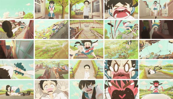 作品的场景风格与恶童有几分神似,动作方面相当夸张,而且是典型的日式夸张动画,与之前看到的欧美的夸张风格不一样,让人想起黑客帝国动画版里面的渡边信一郎导演的《世界纪录》,可见在日本动画学校,原画方面的功力相当的不错.