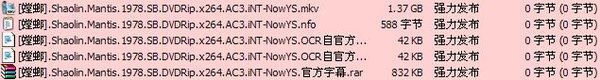 ◎NFO 代码 Title ........ Shaolin.Mantis (1978) Ripper ....... HAM Team ......... iNT-NowYS Runtime ...... 95 Min Source........ R3.DVD9 Release Date.. 08/02/10 Video Info ... X264 r1183M 1653Kbps Frame Rate.... 29.970 fps Resolution.... 716 x 368(ANAMORPHIC) Audio Info ... AC3.192Kbps File Size .... 1400MB Language ..... Mandarin Subtitle ..... Cht / Eng / Chs IMDB RATING... 7.1/10 IMDB URL...... http://www.imdb.com/title/tt0078360/ BBS .......... http://www.52halfcd.com --------------------------------------------------------- 代码 概要 完整名称 : D:\新建文件夹\螳螂\[螳螂].Shaolin.Mantis.1978.SB.DVDRip.x264.AC3.iNT-NowYS.mkv 文件格式 : Matroska 文件大小 : 1.37 GiB 长度 : 1小时 35分 平均混合码率 : 2 039 Kbps 编码日期 : UTC 2009-11-29 16:58:21 编码程序 : mkvmerge v2.9.7 ('Tenderness') built on Jul 1 2009 18:43:35 编码函数库 : libebml v0.7.7 + libmatroska v0.8.1 视频 ID : 1 文件格式 : AVC 文件格式/信息 : Advanced Video Codec 格式简介 : High@L3.1 格式设置, CABAC : 是 格式设置, ReFrames : 16 frames 混合模式 : Container profile=Unknown@3.1 编码设置ID : V_MPEG4/ISO/AVC 长度 : 1小时 35分 码率 : 1 566 Kbps 额定码率 : 1 653 Kbps 画面宽度 : 716像素 画面高度 : 368像素 画面比例 : 2.35 帧率 : 29.970 fps 分辨率 : 24位 比色法 : 4:2:0 扫描方式 : 逐行扫描 bits/(pixel*frame)(数据密度) : 0.198 标题 : R3.DVD9 编码函数库 : x264 core 68 r1183M f21daff 编码设置 : cabac=1 / ref=16 / deblock=1:-2:-1 / analyse=0x3:0x113 / me=umh / subme=9 / psy_rd=1.0:0.2 / mixed_ref=1 / me_range=32 / chroma_me=1 / trellis=1 / 8x8dct=1 / cqm=0 / deadzone=21,11 / chroma_qp_offset=-3 / threads=3 / nr=0 / decimate=0 / mbaff=0 / bframes=3 / b_pyramid=1 / b_adapt=1 / b_bias=0 / direct=1 / wpredb=1 / keyint=250 / keyint_min=25 / scenecut=40 / rc=2pass / bitrate=1653 / ratetol=4.0 / qcomp=0.60 / qpmin=10 / qpmax=51 / qpstep=4 / cplxblur=20.0 / qblur=0.5 / ip_ratio=1.40 / pb_ratio=1.30 / aq=1:0.50 语言 : 简体中文 音频 ID : 2 文件格式 : AC-3 文件格式/信息 : Audio Coding 3 编码设置ID : A_AC3 长度 : 1小时 35分 码率模式 : CBR 码率 : 384 Kbps 声道 : 6声道 声道位置 : Front: L C R, Surround: L R, LFE 采样率 : 48.0 KHz 标题 : Mandarin 语言 : 简体中文 本资源谢绝迅雷、脱兔、vagaa等吸血客户端用户下载,VeryCD版“电驴”等GPL许可的正规emule用户请移步至http://www.VeryCD.com/groups/frees/357934.topic了解适合中国国情的风之痕反吸血插件,或点此直接下载。 (emule必备)反吸血骡DLP插件(antiLeech.dll)最新版v41版及其他有用软件请到自由和分享下载。 做源截图: