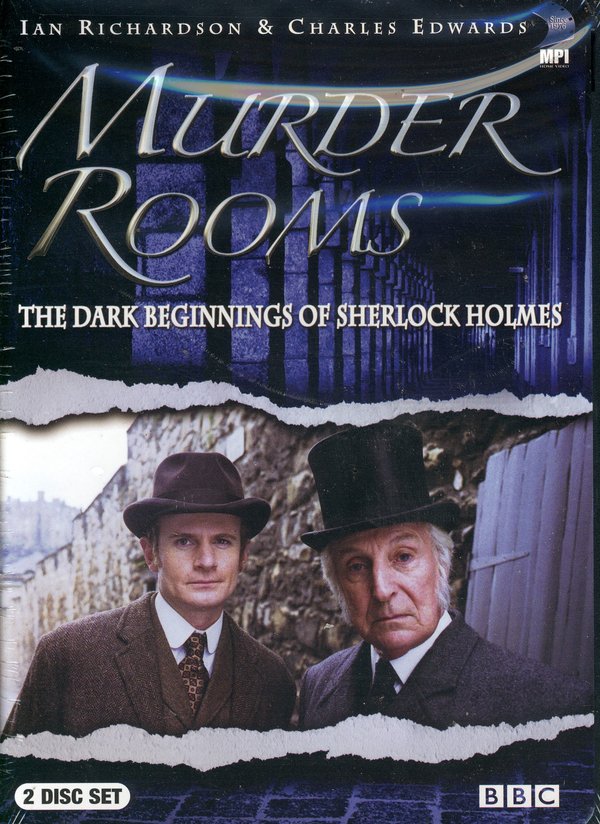 Aired in 2000 on BBC television, Murder Rooms was a miniseries in which Pirie's novels (prequels to the Holmes exploits, I would submit) were brought to life with the accomplished and compelling Sir Ian Richardson (From Hell) as Dr. Bell and Charles Edwards (Batman Begins) as Doyle. The excellent production values drop us squarely into London of the 1870s as Bell and Doyle are steeped in a variety of puzzling, perplexing, and often gruesome criminal cases. The show, originally aired January 4th and 5th of 2000, became a top-rated broadcast within the UK and ultimately found its way to like-minded enthusiasts stateside.