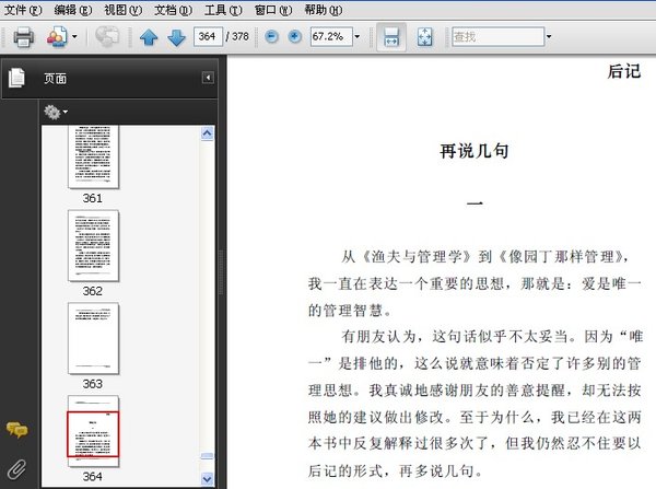 : 前言 写作是一个修身的过程 第一章 南方与北方 第二章 渔夫的故事 第三章 做一个热爱生命的园丁 第四章 管理学的意义 第五章 当园丁变成渔夫 第六章 对执行力的理解 第七章 领导力的两种类型 第八章 刘备和他的团队 第九章 曹操的大败局 第十章 员工为什么效忠于企业 第十一章 园丁眼中的非货币薪酬 第十二章 老板与员工之间的博弈 第十三章 决定员工忠诚度的精神要素 第十四章 让员工们热爱自己的工作 第十五章 转变 第十六章 请记住刘备的名字 后记 再说几句