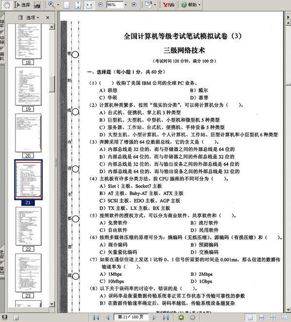 2010年全国计算机等级考试三级网络技术上机考试新版题库pdf电子书免费下载