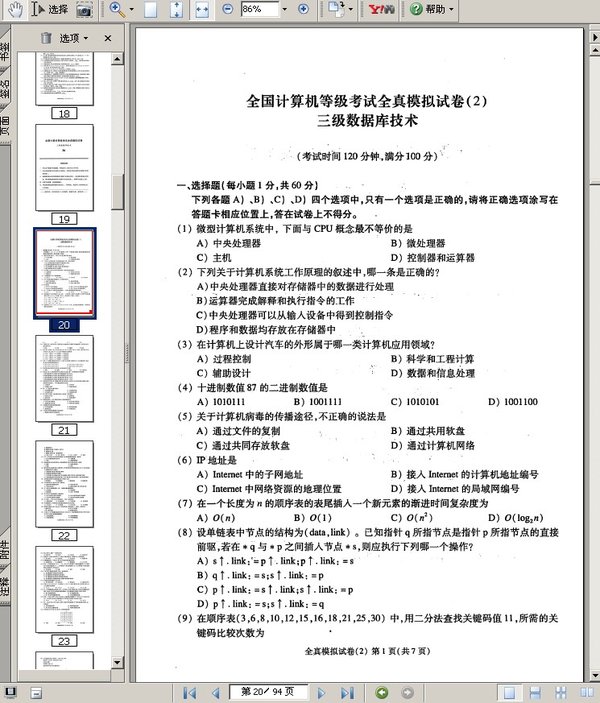 中文名: 2010年9月全国计算机等级考试三级数据库笔试模拟考场