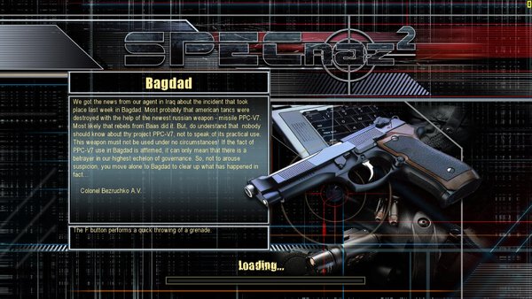 一款以全新设计的开放空间专用3D 引擎「AMOEBA」所制作的第一人称射击游戏。本作以俄罗斯特种部队为名,实际聘请了前特种部队成员担任游戏顾问,忠实呈现苏联特种部队强悍的战技与能力。