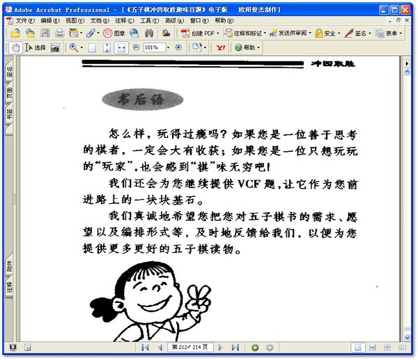 : 1、编者的话 2、内容提要 3、本书使用方法 4、五子棋基本知识 5、国际职业连珠五子棋比赛规则及解释 6、连续冲四取胜(简称“VCF”) 7、排局字谜与VCF 8、趣味CVF100题及题解 10、书后语