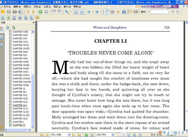《妻子和女儿》(1866)是公认的盖斯凯尔夫人最优秀的作品,也是她最后一部作品。实际上,结尾部分还没有写完,她就突然病逝了。