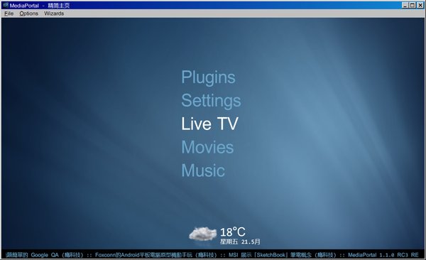 MediaPortal也是一款提供你未来影音媒体中心雏形的播放软件.不过它是开源的!具有影音播放、电视欣赏、预录、照片浏览、音乐欣赏、气象播报等功能,它能够让使用者将它当作计算机中的影音媒体播放中心,只要想要观看电视节目或是欣赏影音档案时,都只要透过MediaPortal就能够达成.