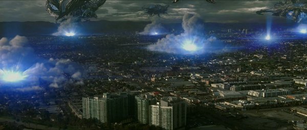 成本虽低,场面却浩大,一部野心十足的电影,在预告片的开始就向致敬,那座曾被中巨大外星飞船摧毁的X角大楼是第一个出现在预告片上的建筑。