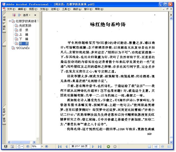 :   她们是一党。她们眼黑着这边,天天寻觅什么风吹草动,喊喊喳喳,吹向邢夫人的愚昧的软耳朵。   我刚才说了,有一种七十八回本流传过,书到宝玉祭雯,在池边泣读《芙蓉女儿诔》,便失掉后文(另有考证为据)。从这种本子来看,书中最末部分所写的一件特大事件——不祥的预兆,即是抄检大观园,那是第七十四回的事了。这件丑事与闹剧,正是鲁迅先生所说的“已露悲音”“姜凉之雾遍被华林”,关系至为重大。这场剧是谁“导演”的?就是王善保家的,是她挑动了王夫人的惊吓与怒气。……   本书是是周汝昌先生关于遗失的后40回的猜测,很好看!