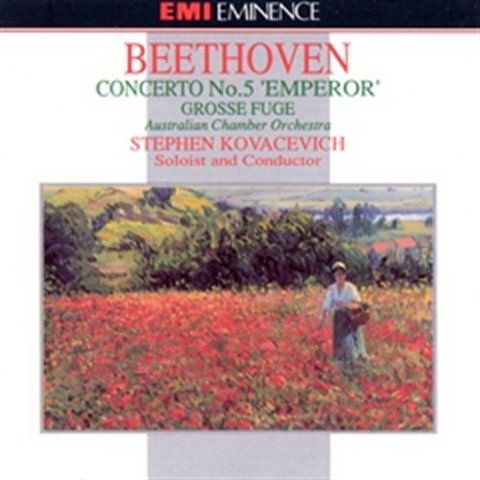 在贝多芬的第五钢琴协奏曲“皇帝”的众多演奏版本中,科瓦切维奇的两个版本获得了《企鹅激光唱片指南》一书极高的评价,全都获得了三星带花的最高殊荣。作者点评道:“科瓦切维奇诠释的这部著名协奏曲当今无人可以超越。他在Philips著名的版本(现为Concert Classics),成为每个人的范本,再加上搭配的《奏鸣曲》,更是值得大力推荐。这款Eminence版由独奏家同时担任指挥,同样表现了这位艺术家的灵性,速度整体看来有些快,风格紧凑。由于数字录音使钢琴的音响有些偏亮,但是比Philips的更真实,所以所,尽管价格上不占优势,对于这部经常录音的作品来说这依然是首选。而且,搭配的曲目是科瓦切维奇指挥的令人振奋的《大赋格》。”