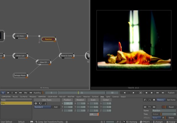 toxik节点合并中文视频教程《toxik教程》《autodesk toxik教程》 ITMG视效录制发布 教程来源于: www.itmgvfx.com 视频教学内容 : Toxik采用节点合成方式.对于他的合成方法和操作方式和flame极度相似.toxik采用横向节点.toxik需要把素材从硬盘内写入到用户项目后才可以调用到场景内.对与toxik可以同时创建多用户多项目并支持项目下同时开启多个场景和多和合成树.当我们建立compostion后也就意味着新建立了合成树.在合成书内我们可以添加任意数量的素材和无限制的节点特效.toxik的合成比较擅长通道计算和色彩的调节. 视频教学内容 : Toxik有着不错的节点三维空间动画功能.toxik的特效合成节点树和他的三维空间节点树可以混合使用.在三维场景内我们可以添加摄象机.灯光.图层.材质.在新的版本中甚至可以引入maya. max的场景和公共模型格式.toxik的摄象机可以使用如boujou .matchmover.pftrack等外部跟踪软件的动画数据.toxik三维空间还可以把合成数作为物体的贴图和三维平面物体使用甚至可以为其添加材质.并接受灯光照明和阴影的透射. Toxik有着众多的通道处理工具.他在引入图象后可以通过通道工具进行通道的保留和祛除.填充.覆盖.复制.转换.布尔运算.也可以将任何指定的通道进行提取并修改.toxik 还支持可以携带多达32个通道的Exr格式序列.并对背景层.环境色层.高光区域层.阴影区域层.反射折射层.RGB层.阿尔法透明通道层.和Z深度通道层和法线层进行提取和编辑. 视频教学内容 : Toxik可以为任何可以修改的参数记录动画.记录的动画可以通过轨道面板和曲线面板进行编辑.对于参数在动画面板的显示我们只需要在左侧拦内为其指定加入新的标记.就可以将当前参数放置在轨道和曲线面板.轨道面板主要是对关键帧的时间位置和图层的整体时间位置和素材的入点出点进行调整.对于曲线面板主要是针对参数的数值进行上下加减调整.toxik可以自定义面板的位置和大小和布局.也可以同时开启多个面板来添充整个屏幕.对于我们习惯的任何软件的界面布局都可以通过他的自定义进行模仿. 视频教学内容 : Toxik的调色工具应该算是PC上合成软件中最好的.他的使用方式也是和flame相同.他分为调色.过色两种类型.当然他的调色工具也是很多的有基本的曲线.直方图.染色等常见的.还有单色盘调色和多色盘过色.色盘调色是将画面的255色分成三份0-85.85-170.170-255.也就是我们平常所讲的暗部区域.中亮区域.高量区域.通过这三个区我们可以对暗部区域.中亮区域.高量区域进行染色.色相.饱和.对比.平衡.色相偏移.增益伽码的调节.还可以对R