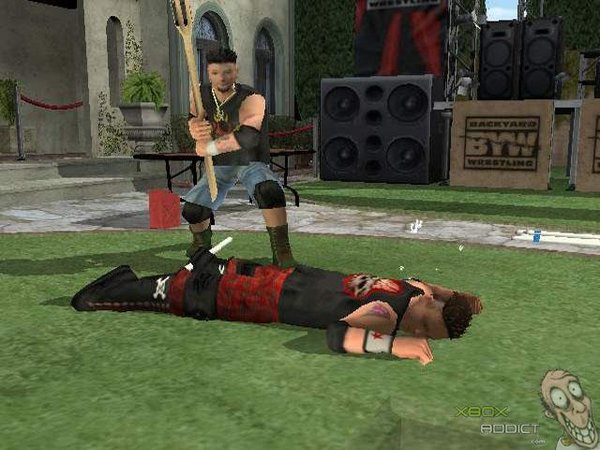 由Eidos预定2003年9月9日在北美跨PS2及Xbox等平台推出,Paradox Entertainment开发制作的这款人气摔角动作游戏「Backyard Wrestling:Don't Try This At Home」,本作为一款由 大仁田厚 的电网殊死战中得到灵感制作的摔角格斗游戏,游戏中以家庭后院等场地为舞台,玩家可以在此使用各种掉落在舞台的道具像是棍棒等来当作武器攻击对手,并在舞台上设计各种陷阱如地雷等来陷害对手,给予对手重大伤害。同时游戏中每角色的攻击招式也都非常丰富血腥,对喜欢摔角格斗游戏的玩家来说可说是一款不容错过的格斗大作。