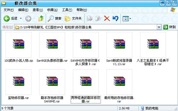 使用方法 1:头像文件——放到游戏目录下 D_FacPnt.s9、D_FcPtPK.s9、G_FaceL.s9、G_FaceS.s9、G_FaceT.s9、G_FacLPK.s9、G_FacSPK.s9、G_FacTPK.s9 2:剧本文件——放到游戏目录下 D_Sce001.S9 3:名称信息文件——放到游戏目录下 M_MsgPK.s9 4:列传文件——放到游戏目录下 M_RtdnPK.s9 5:音乐文件夹BGM——放到游戏目录下 6:新宝物图片文件——放到游戏目录下 G_Still.s9 7:新宝物信息文件——放到:系统盘:\Documents and Settings\用户名\My Documents\Koei\San9 TC\TItem D_Titem.s9 8:新武将文件——放到:系统盘:\Documents and Settings\用户名\My Documents\Koei\San9 TC\TPrsn D_TPrsn.S9 9:出征阵行补丁(可选乌丸等阵) 启动游戏后再启动,否则部分阵型无法使用 窗口化,运行regedit.exe修改注册表 HKEY_CURRENT_USER\Software\KOEI\San9 TC\Configs的fullscreen改为0 不能玩的请运行一次Regme_San9PK(包含在游戏目录里面) 有部分修改器会被误报毒,保证没毒请放心使用。 都是繁体中文威力加强版1.0.1.0,喜欢玩原汁原味的建议下第一个,1M网通长期在线供源,第一次发布资源大家多多支持!