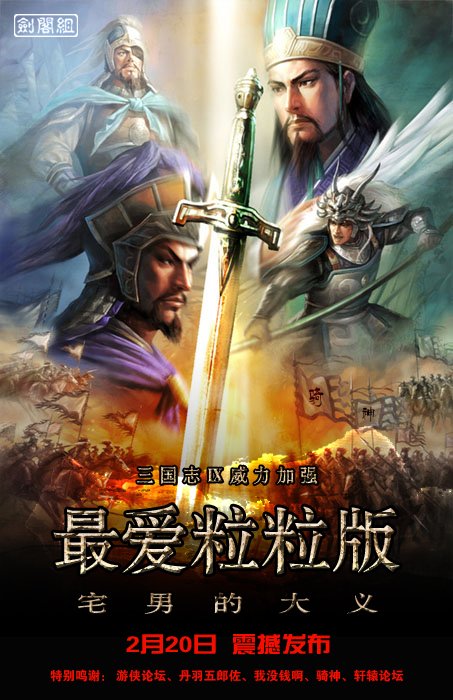 游戏模式的回归,让《三国志9》成为了君王的天下,但或许是考虑到身为堂堂一国之君,怎能每次都御驾亲征,于是游戏的战斗系统也发生了改变。而最大的改变在于,玩家再也无法控制战争的进行了,同时由于参考了同门旗下《信长之野望》的战斗设计,战略与行动转换的时间很长,如果大家的电脑不够强劲,随着战争的频繁进行,等待的时间足以让你打起瞌睡。古人云:将在外,君命有所不受。未曾想到,这句话在《三国志9》中却真成了现实。部队的阵型一经选定派出后,就再也无法更改,单挑更是变成由电脑指定,甚至于连奔射等战技的施展也是随机发生,虽然暂时还无法定论这一改变的好坏,但对于想玩游戏的玩家来说,这无疑将是一个新上手的过程。 下面是威力加强版新增内容 一:首先,在剧本模式下,可产生分支剧本模式,也就是说每关达成不同条件会有不同分歧路线 例如:(曹操)报仇雪恨战 -> 伪帝讨伐战∕濮阳防卫战(中间的剧本就产生了分歧) -> 吕布讨伐战 二:高手竞技模式﹕可设定武将能力值高低﹐和武将可死亡属性(这下玩家又要体会当年《霸王的大陆》良将战死而悲痛万分的心情了!)﹐也可隐藏部份出阵指令。 三:兵士提拔系统:战争中发现有能力的兵士﹐就可以对其进行提拔和培养,最后育成武将的全新系统。过程大致是:——发现有能兵士->选择指导武将﹐选择指导方针(严格∕坚实∕亲身)->选择指导内容(军训∕敷设∕知识∕闭关) ->最后产生风格各异的虚拟武将。 注:这将是加强版中最值得期待的要素。也可以说是完全创新的要素,和我们以前在《苍狼与白鹿》系列中所见到的完全虚拟的武将不一样,这次是由玩家从自己的势力体系中发现高能力士兵,而由自己一手培养而成就武将,让我们获得培养士兵武将的体验,更加具有亲和力和耐玩度。 说白了,对于那些喜欢扮演弱小君主的玩家更加有效。 四:势力统合系统﹕多个弱小势力透过统合成为一个强大势力﹐可共用武将及资金﹐信望会上昇﹐志愿兵也会增加。(天那!这个系统太恐怖了,如果电脑方对这个系统运用得很好的话,对玩家的势力发展可是巨大的考验哟!) 五:AI加强﹕光荣游戏的AI一贯被高手玩家讽刺为弱智,不知道本次AI增加到底如何,根据KOEI的说法,电脑思考将大幅加强﹐会兵分多路出击﹐也会多派救援部队增援。不再是有勇无谋的吕布之流。 六:城市兵法技能:这个是一个新的系统,主要是用于防御系统上的,就是一些城市具有特殊的兵法属性:比如:成都-连弩,也就是说,当你去攻打成都的时候,这个兵法特级自己启动,无论成都守城的部队有无会连弩的武将,都可以启动连弩攻击,使得攻打城市的难度加大了,真正体现了一些着名城市的易守难攻。 七:编辑机能﹕可编辑武将设定﹐都市设定。(对于这个技能,真正的KOEI玩家从来都视之为无聊) 八:年表机能﹕记载玩家武将足迹﹐建设或攻略要塞﹐武将仕官﹐起用军师等等。 【版本说明】 第一个资源转自轩辕论坛 建议下载 此安装包的特色: 1、包含全部41个电影文件,保证原汁原味。 2、含原版V1.1.5和PK版V1.0.1两个版本。 3、完全免CD破解,无需使用虚拟光驱。 4、可设置剧本全开、磨练史话全开。 5、含rangzh制作的加速补丁SanCalc.dll。 6、含异族阵形补丁Shape.exe。 7、附加了马云騄、黄月英默认新武将存档。 V5.1相对V5的改进: 电影文件重新编码,修正了某些电影长度缺少1-2秒的错误。 声明:本安装包仅作学习和研究之用,请自觉于下载后24小时内删除。所有内容“照原样”提供,您必须自己承担使用本安装包带来的风险。 第二个资源经过修改和整合,转自游侠详情请点 风舞渊前辈的修改版+最爱粒粒版的集合 http://game.ali213.net/thread-2698781-1-2.html 直接解压可玩 1。加入风舞渊修改的全部内容(玩的时候请打开 SanIXPKCheat.exe 加载Cheat.s9 进行作弊设置)。 2。附加了最爱粒粒版的音乐 攻城云梯 单挑(跳劈等血腥动作) 显示长方型大对话框,部分头像替换,事件图片。 3。做了一点头像错位的修改(凤舞渊修改版有很多头像都偏移位置 ) 修改后头像应该每一个都正常了。 4。新武将和新宝物(都是凤舞渊修改版的) 最爱粒粒版中的大量实用修改器也加进去了。 风舞渊修改版作者的原话是要利用SANIX的系统,尽力接近中国自东汉末年到西晋初年的真实情况。(修改人物属性、地名、城市数值、人口上限、阵型、宝物、官位、特技剧本等数据以接近史实) 2010.8.28追加内容 最爱粒粒饭版 建议下载 http://game.ali213.net/thread-2596442-1-4.html 解压后有说明