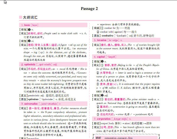 对列出的“大纲词汇”,分别从国际音标、词性、词义、例句、同义、反义、派生和辨析等多个方面进行了解析,力求挖掘大纲词汇的深度;对“超纲词汇”和 “重点词组”的注释侧重使考生加深了解和认识。为了使考生复习方便,我们特意将词汇注释部分另外印刷成册,这样考生既可以先掌握10年真题词汇,然后再做真题;亦可在做真题时便于查词,从而大大提高复习的效率。