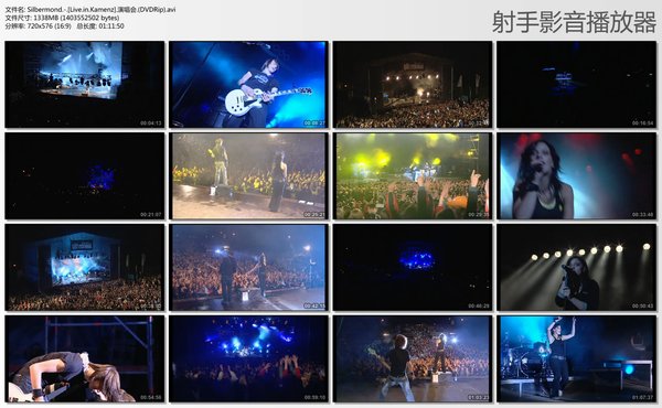 Silbermond(德语“银月亮”之意)是一支来自德国的摇滚乐队。这张DVD是乐队于2005年进行环游演唱在Kamenz录制的,于2006年发行。现场气氛十分不错。 原DVD镜像(点击进入)由驴友silbermond1998提供,可惜那个资源没有成为精华资源。我花了整整半年才把这个镜像拖下来,压制成AVI献给大家。