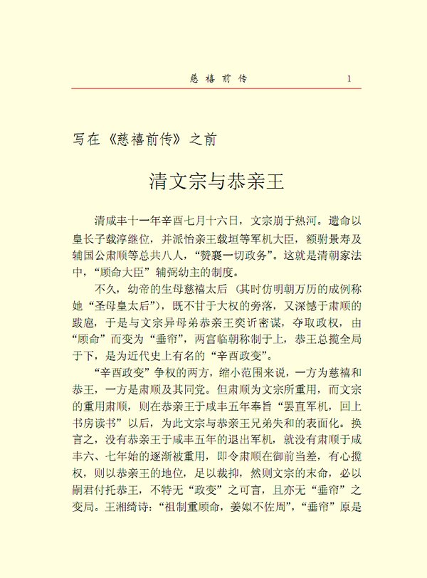 : 慈禧前传 玉座珠帘(上) 玉座珠帘(下) 清宫外史(上) 清宫外史(下) 母子君臣 胭脂井 瀛台落日