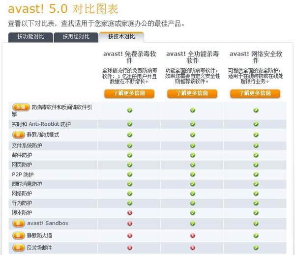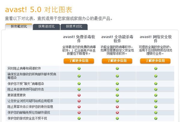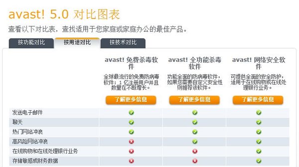 avast!产品性能比较