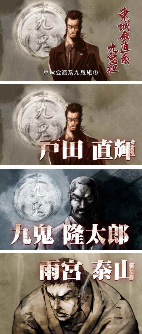 龙也在每一章里面都要一边探索神室町一边发展故事,而章节的最衙,就要在东城会直属九鬼组所经营的“龙火”和各式各样的强敌战斗。在这个世界里面,有些斗士会因为某些原因而无法在正式舞台上战斗,为了满足这些人对名声、金钱、胜利之渴望所举办的非法格斗赛,那就是龙火。