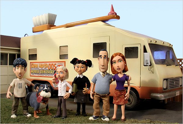《格伦马丁DDS》是尼克罗丁推出的新定格动画,其档期为紧接热门动画《海绵宝宝》后的晚上8:00,处于动画片的黄金档期。 尼克罗丁的发言人大卫•比特尔(David Bittler)称:“《格伦马丁DDS》拥有200万观众,它是尼克罗丁晚间档的主要节目之一,并不是单纯的儿童节目。”他还表示,目前公司并不打算将《格伦马丁DDS》更换档期。 A star-studded voice-over cast featuring Kevin Nealon (Weeds, Anger Management), Catherine O'Hara (For Your Consideration, Chicken Little) and Judy Greer (27 Dresses, Arrested Development) has been tapped for Nick at Nite's upcoming stop-motion animated comedy, "Glenn Martin, DDS" set to premiere this Summer. The first television production to come from Michael Eisner's Tornante Animation, "Glenn Martin, DDS" follows a beleaguered dentist and his family trading in the suburbs for life on the road. Crisscrossing the country, the Martins are beset by an array of colorful locals and crazy situations in locations ranging from Las Vegas to Amish Country. Many of the characters they encounter are voiced by enough instantly recognizable guest stars to fill a parking lot of RVs, including: Chrissie Hynde, Betty White, Gene Simmons, Wendie Malick and more. Source: Nick at Nite