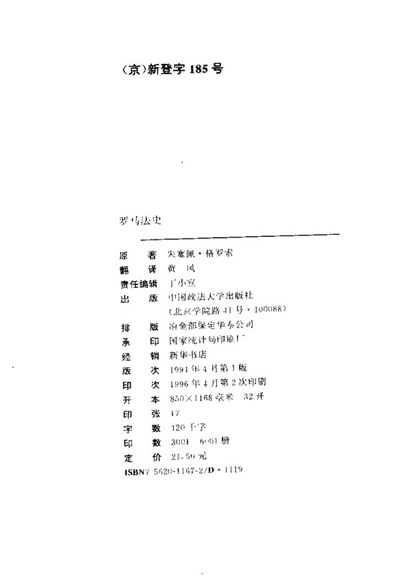 罗马法史 罗马法史 1991第一版(扫描)[PDF]