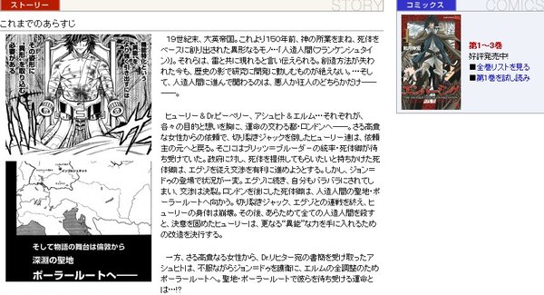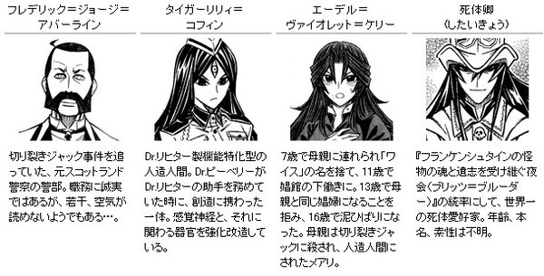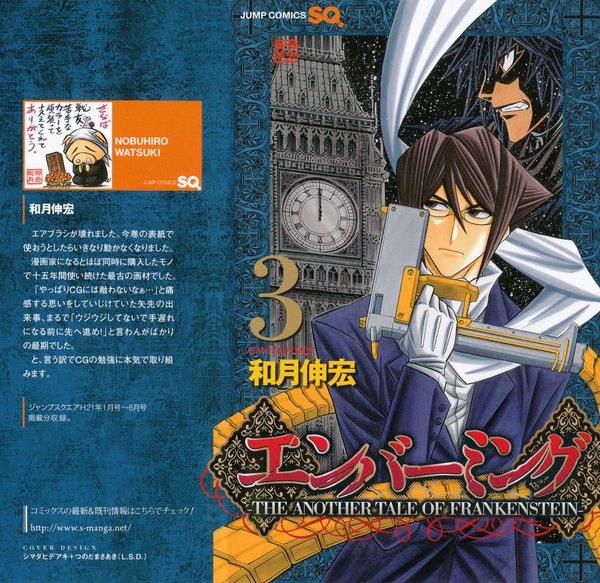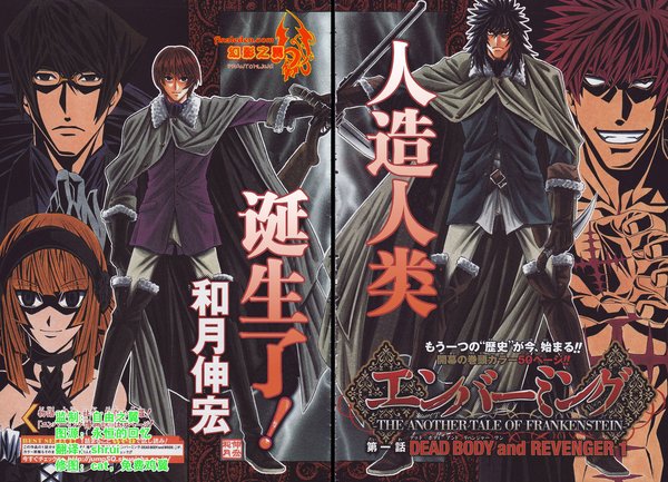 《EMBALMING-THE ANOTHER TALE OF FRANKENSTEIN-(猎尸者)》以19世界的欧洲为背景,描述了用尸体制造出的人造人和人类之间的战斗。作品从2007年《JUMP SQUARE》创刊开始连载,截至现在已发售了3卷漫画。作者和月伸宏因为在集英社王牌杂志《周刊少年JUMP》上连载《浪客剑心》为人熟知,之后发表了作品《GUN BLAZE WEST》,由他创作的《武装炼金》也曾被制作成动画,是一位广为人知的漫画家。