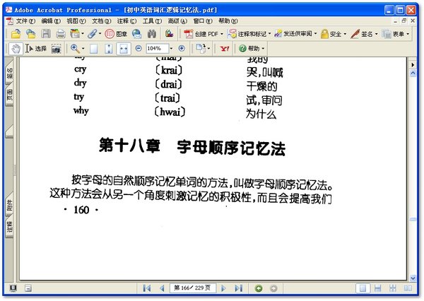 : 引言 对初中英语教学的探讨与对策 上编 语音教学中的逻辑记忆法 第一章 熟记26个字母的顺序及其名称 第二章 熟记48个音标及其对应关系 第三章 音 标、字母联系记忆法 第四章 字母、音标、典型词汇联系记忆法 第五章 字母组合、音标、读音规则、典型词汇联系记忆法 第六章 运用英语词汇的读音规律,举一反三突破读写关 第一节 元音字母的读音规律 第二节 辅音字母的读音规律 第三节 英语词汇中特殊读音记忆法 下篇 词汇教学中的逻辑记忆法 第七章 主题记忆法 第一节 名词数的记忆法 第二节 不规则动词记忆法 第三节 数词记忆法 第四节 代词记忆法 第五节 分类记忆法 第六节 类推记忆法 第八章 同义词记忆法 第九章 反义词记忆法 第十章 复合词记忆法 第十一章 词类对应记忆法 第十二章 词组记忆法 第一节 正序词组记忆法 第二节 逆序词组记忆法 第十三章 加减记忆法 第一节 词尾加字母记忆法 第二节 词中减字母记忆法 第十四章 对比记忆法 第一节 词首对比记忆法 第二节 词中对比记忆法 第三节 词尾对比记忆法 第十五章 词中词记忆法 第十六章 联想记忆法 第十七章 记忆单位记忆法 第十八章 字母顺序记忆法