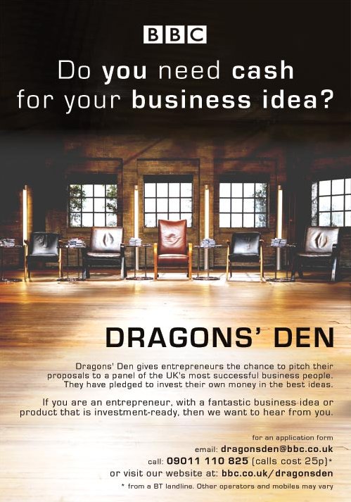 【类型】: 真人 【影片长度】: 平均60分钟 【集数】:未知 【字幕】: 暂无 【服务器】: 随机 【分享时间】:全天 【内容介绍】: BBC2推出的百万英镑创业投资真人秀节目,任何有好商业点子的人都可以挑战六位精明无比的亿万富翁掏腰包帮你创业。个人感觉比The Apprentice更加好看。( sonychen 注 2007) Dragons' Den(《龙之穴创业投资》)是一档百万创业投资真人秀节目,该节目最初起源于日本,节目的版权属于SONY公司,后来该节目又在英国、澳大利亚、新西兰、以色列、荷兰以及加拿大进行本土化制作。 《Dragons' Den》的这些企业家们也有看走眼的时候。最近在网上发现一条新闻,说是两年前,《Dragons' Den》节目在英国广播公司(BBC)商业台制作时,一个名叫安德鲁的英国人介绍了自己的小发明——桌子防摇器,企业家们捧腹大笑。而如今,这个一度被称作“历史上最可笑发明”的小塑料装置已经为安德鲁赚到了500万英镑。点击这里查看详情 买鞋子哪个网站好?首选中国最大的正品鞋网商城(http://shoes.weixiaodian.com/)、 网上正品鞋城(http://u.weixiaodian.com/shoe/)。微店网页版请从http://121.weixiaodian.com登录:手把手教你如何免费申请开通微店、怎样经营微店及如何用微店赚钱。看笑话,上