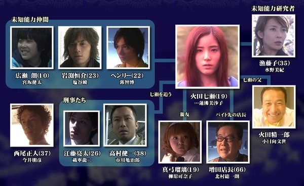 】: 《超能少女七濑》是作家筒井康隆的其中一部代表作,79年由nhk电视剧化的人气悬疑惊险剧。 因母亲的死而觉醒了精神感应能力的主人公七濑(莲佛饰),与拥有同样能力的少年朗(宫阪饰)和拥有预知能力的青年恒介(盐谷饰)探寻著自己超能力的秘密, 同时与超能力滥用的组织做抗争。    七濑(莲佛美沙子)和恒介(塩谷瞬)因为预言将发生土石流而向乘客们告知,不过却被高村警察(市川龟治郎)认为他们在危言耸听。 七濑拜访藤子(水野美纪)并且得知了父亲精一郎(小日向文世)曾经从事超能力开发,而恒介就是成功开发的案例。    七濑和阿朗(宫坂健太)住进了琉璃(柳原可奈子)的公寓,而恒介在此时却被卷入一起事件当中…。    七濑(莲佛美沙子)和恒介(塩谷瞬)工作的地方来了一名具有透视能力的客人西尾(今井朋彦)。从事经营谘询的西尾表面上表现的很绅士,但是实际上却将运用他的能力窥探客户的重要情报。店长增田(北村总一郎)和妻子尚子(伊藤荣子)这对形影不离的恩爱夫妻也被西尾推向不幸的深渊…