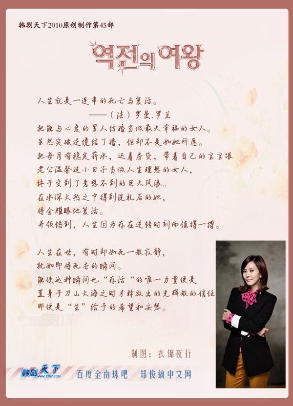 【剧情简介 】:韩国演员郑俊镐和朴艺珍将于金南珠携手出演《逆转女王》,电视剧相关工作人员也确定了这一消息。