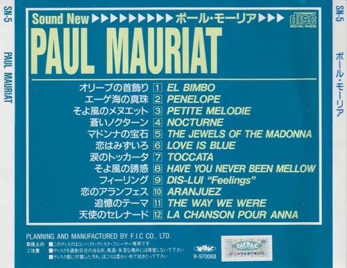 中国人口那么多,Paul Mauriat 的粉丝那么多,为什么中国大陆引进的唱片少的可怜,要不然是贵州**音像出版社,要不然就是云南**音像出版社搞的寻不到正规来路的盗版,要不就是制作粗劣的复制版。然而,在日本,却是真真实实西洋现代器乐轻音乐的大陆。