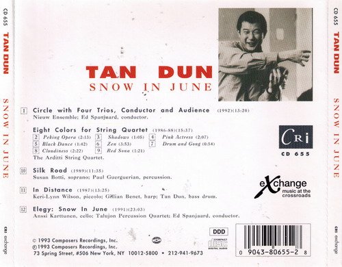 谭盾(1957年8月18日-),湖南长沙人,著名作曲家,现旅居美国纽约。约翰·凯奇的追随者,以其非常规音像手段,音乐剧场以及自己的作品中的大量拼贴(音响以及自己的其他作品)闻名,1987年获巴托克国际比赛首奖、1988年获新西兰国际杰出作曲奖、1990年获日本人野义郎作曲比赛首奖、1993年获美国贝丝最佳舞剧音乐创作奖、1994年,其交响乐作品专辑被BBC评为全球最佳十大唱片之一,并获日本文学艺术院最佳古典音乐唱片大奖、2001年获美国第73届奥斯卡最佳原创音乐奖。