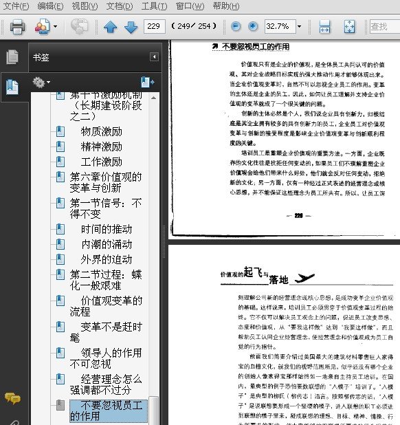 : 第一章 迷雾重重:谁识庐山真面 1 第一节 企业文化错误百态 3 缺位 3 无根 4 乱炖 5 拷贝 6 云山 7 错误 8 第二节 企业文化建设的深层问题 8 组织实践层面 企业文化没有根本成为组织管理的实践工具 9 实证研究层面 国内指导企业文化实践的理论缺乏体系, 甚至有很多歪理邪说 12 社会文化支持层面 整个社会缺乏企业文化识别氛围和能力 13 第二章 价值观和四元价值观理论 14 楔子 文化是根 16 第一节 迂回靠近那个核心——价值观 18 结构 19 误区 24 伪文化 28 真谛 34 .地位和作用 37 第二节 兼顾——从四元价值观到七元价值观 42 顾客是企业的上帝的价值观 42 股东是企业的上帝的价值观 43 员工是企业的上帝的价值观 43 公众是企业的上帝的价值观 44 七元价值观的提出 47 第三节 价值观的四个层次 51 核心价值观 52 目标价值观 53 基本价值观 53 附属价值观 54 第四节 对战略的内动力作用 55 价值观为战略的制定提供成功的动力 55 价值观是战略实施的关键 56 价值观是战略控制的“金钥匙” 56 价值观是维持战略优势的条件 57 价值观与战略的适应和协调 57 第三章 双刃剑:成也萧何,败也萧何 60 第一节 预埋下失败的种子 63 利益导向 64 轻视员工 65 忽视顾客 66 保守僵化 67 英特尔:用价值观协调行动 68 第二节 基石铺就通往成功的路 70 争取更好,争取最好 70 尊重每个员工 71 支持创新 72 动员全体员工 73 相信利润的重要性 74 树立质量和服务意识 75 坚持不懈 76 第三节 成功企业的价值观 77 榜样一 强生信条 83 榜样二 GE价值观 86 第四章 价值观的起飞 91 引子 25米高度 93 起飞 93 落地 94 第一节 阻力 95 压差阻力——去粗取精 95 摩擦阻力——外部的影响 95 诱导阻力——去伪存真 96 干扰阻力——内部的碰撞 96 第二节 价值观塑造的八项原则 97 原则一 大家共同参与提炼企业价值观 98 原则二 确保价值观正确反映企业长远目标 98 原则三 价值观应该激励人心 99 原则四 注重价值观和变革的关键驱动因素 99 原则五 明确做出选择 100 原则六 坚持不懈地灌输 100 原则七 确保使用简单易懂的语言 101 原则八 确保价值观各要素能明白无误地转换成行动 101 第三节 价值观塑造的五个误区 102 误区一 有胜于无 102 误区二 多胜于少 103 误区三 人云亦云 104 误区四 内容先于行为 105 误区五 战略先于价值观 105 第四节 价值观塑造的流程 106 启动 106 诊断评估 109 价值观的提炼 120 价值观的确定 120 第五节 塑造企业价值观——起飞 121 分析维度 121 分析工具 127 操作要点 130 实证举例 136 第五章 价值观的落地 138 第一节 硬环境:组织准备 140 第二节 软环境:营造氛围 149 第三节 将价值观推进到底 155 第四节 传播与推进(宣传阶段) 158 组织符号体系与价值观传播 158 讲故事——价值观在组织中传播最有效的方式 160 价值观的推进 161 第五节 沟通渠道(沟通反馈阶段) 165 大炮打靶——信息传递与反馈例子 166 价值观的沟通渠道 167 价值观沟通渠道的选择 169 第六节 制度建设(培育阶段之一) 171 企业制度建设要以价值观为核心 171 企业制度的制定、实施与修改要以价值观为导向 173 完善各种企业制度 175 第七节 领导风格(培育阶段之二) 177 领导风格在价值观落地中的作用 178 领导风格的种类 183 第八节 工作行为(行为转换阶段) 184 工作行为与价值观的关系 184 员工工作行为的种类 186 第九节 绩效考核(长期建设阶段之一) 189 第十节 激励机制(长期建设阶段之二) 196 物质激励 197 精神激励 200 工作激励 202 第六章 价值观的变革与创新 204 第一节 信号:不得不变 208 时间的推动 208 内潮的涌动 209 外界的迫动 211 第二节 过程:蝶化一般艰难 215 价值观变革的流程 215 变革不是赶时髦 227 领导人的作用不可忽视 228 经营理念怎么强调都不过分 228 不要忽视员工的作用 229