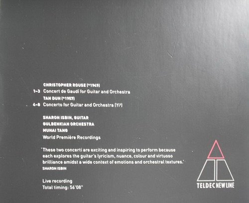 这张碟是中国作曲家谭盾和美国当代作曲家Christopher Rouse的吉他协奏曲。这是这两部作品的第一次发表,TELDEC出品。