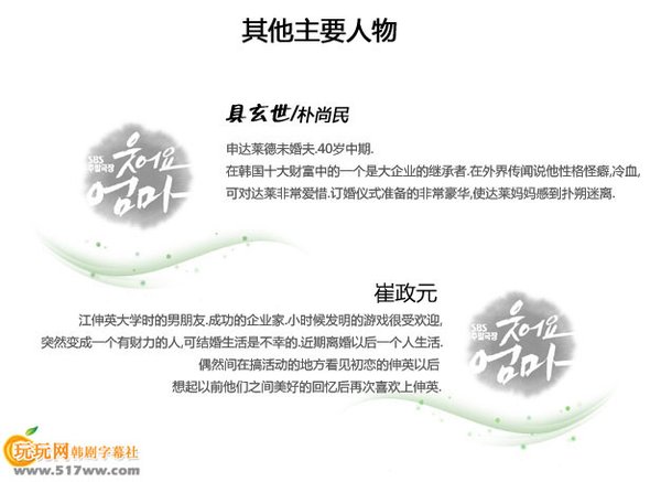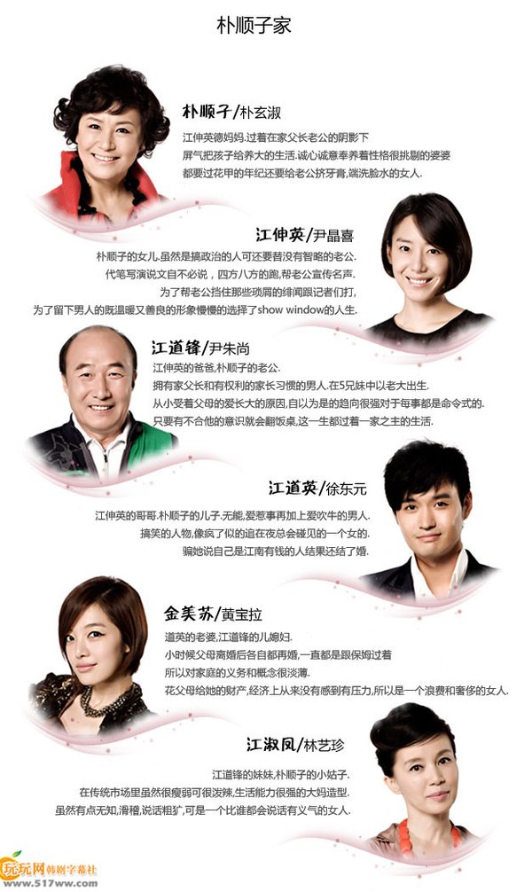 【中文剧名】:微笑妈妈 【韩文剧名】:웃어요엄마 【电视台】:韩国SBS电视台 【首 播】:2010年11月6日 【集 数】:暂定50集 【导 演】:洪成昌(SBS儿媳妇与少奶奶/原来是美男) 【编 剧】:金顺玉(那样也喜欢/妻子的诱惑/天使的诱惑) 【演 员】:尹晶喜 李在皇 李美淑 姜敏京 金镇佑 【格 式】:RMVB 【语 言】:朝鲜语 【字 幕】:中文字幕 【制作出品】:玩玩网字幕社 【
