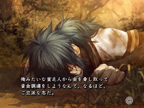 游戏名称:薄樱鬼:黎明录 日文名称:薄桜鬼:黎明録 英文名称:Hakuouki ReiMeiRoku 主机平台:PS2 游戏类型:AVG女性向文字类冒险游戏 发售日期:2010-10-28 游戏售价:通常版7140日元(含税) 游戏售价:限定版9240日元(含税) 游戏人数:1人 作品分级:CERO C 制作厂商:IDEA FACTORY 发行厂商:IDEA FACTORY 官方网站: http://www.otomate.jp/hakuoki_reimeiroku/ 游戏系自炊物。最近发售的薄樱鬼2011月历挂历版上的图是TV第一季DVD五卷/游戏录/随想录/巡想录/黎明录限定版&普通版/本篇DS版封面图无Logo版,2011月历台历版上的图是黎明录普通版封面+游戏CG图若干,想收无印封面图和CG大图的可以考虑入那东西。 全开存档系纯手打(CG全满,觉书和十六夜插话不是全满的,因为那些还要去通Bad End) 其他相关物请去下115的 薄樱鬼黎明录全CG(分辨率600*448,自截) http://u.115.com/file/f843b52738 薄桜鬼 黎明録 限定版特典 DRAMA 龙之介の肝试し(320K,自炊) http://u.115.com/file/t8996bf1b1 薄桜鬼 黎明録 予约特典 DRAMA 暁天に见る阶(320K,自炊) http://u.115.com/file/t8d851a21f 「薄桜鬼」本篇(新选组奇谭)OST(320K+BK) http://u.115.com/file/f8ab57e627 随想录游戏提取新增BGM(320K)(自提取) http://u.115.com/file/f53455e1e9 黎明录游戏提取新增BGM(320K)(自提取,含ED曲ED视频抽取版) http://u.115.com/file/t8e5204d90 风间&土方黎明录游戏提取全对话声优音(自提取,128K) http://u.115.com/file/t88185ffef 冲田&斋藤黎明录CV音(自提取) http://u.115.com/file/f352dedb22 原田&藤堂黎明录CV音(自提取) http://u.115.com/file/f3fd8d8052 龙之介黎明录CV音(自提取) http://u.115.com/file/f3567c2fe4 千鹤&小铃黎明录CV音(自提取) http://u.115.com/file/t15aa6e90e 黎明录开始界面CV音(附送的福利,就是游戏开始时每个人念的“薄樱鬼,黎明录”) http://u.115.com/file/t144be3191 《黎明录》游戏本体,觉得驴子慢的话就看这里吧: 一共6个Part,请下完全部Part后再解压其中任意一个,压缩包内附带模拟器与攻略 115下载时有一定几率文件损坏,如果解压时出现文件损坏或者要求输入密码的提示请重新下 ---------------------------------------------------------------------------------- Part1 http://u.115.com/file/t33e38eb6 Part2 http://u.115.com/file/t3571c4378 Part3 http://u.115.com/file/t3e37d2af5 Part4 http://u.115.com/file/t3ff10574f Part5 http://u.115.com/file/t3542dd413 Part6 http://u.115.com/file/t3364251b4 全开存档使用方法: PS2模拟器的安装目录下找到Memcards文件夹,打开里面的open.exe选择导入(有该游戏旧档需先删除旧档) 【游戏介绍】   《薄樱鬼 黎明录》为《薄樱鬼》系列作中一作,属于外传,也可说是本传的前传,时空背景设定于新选组与千鹤相遇前,新选组诞生时。主角将由全新人物「井吹龙之介」担任,而在本传中被暗杀掉的芹泽鸭也会登场,玩家将以男性的观点来进行游戏,因此此款游戏不再是女性向冒险游戏,而是历史冒险游戏。 【故事梗概】   母亲因病而亡的龙之介,在失去生活的心灵支柱、漫无目标的四处彷徨时,被要上京的尊王攘夷派浪士打劫而身无分文。没有食物又没有钱的龙之介,就在他快饿死时,遇上了正要前往京都路上的芹泽鸭。   被捡到的龙之介就在非自愿的情况下与芹泽鸭一起行动。他们的住处,也就是后来被称为「新选组」的杀人集团根据地。   虽然龙之介因为成长历程而非常厌恶武士,但在接触了那些为了成为武士而努力的人们、并了解他们的目标与梦想后,龙之介顽固的心也开始有了变化。   他们心中向往的武士是什么?作为自己目标的道路又在哪里? 这就是,在幕末动乱之中,一位无名少年的故事……。 【新增内容】 主角全程语音,前作主角雪村千鹤亦有语音。 除《行军录》,另收录《编成录》,可从任一章节开始游玩,友好度也可调整。 故事每一章回,都设有以主角以外的另一视点来述说的剧情《十六夜插话》。 【主要人物】 井吹龙之介(CV:关智一) 本作主角,在即将饿毙途中时为芹泽鸭所救,似乎对武士抱有极大的偏见。 芹泽鸭(CV:中田譲治) 新选组局长,因其为人高傲、激进、暴力,后被新选组内部肃清。 土方岁三(CV:三木真一郎) 新选组副长,被称为鬼之副长。 冲田总司(CV:森久保祥太郎) 新选组一番组组长,天才剑士。 斋藤一(CV:鸟海浩辅) 新选组三番组组长,左撇子居合斩的高手。 藤堂平助(CV:吉野裕行) 新选组八番组组长,最年轻的新选组干部。 原田左之助(CV:游佐浩二) 新选组十番组组长。 风间千景(CV:津田健次郎) 萨摩藩所属浪士,西之鬼首领。 雪村千鹤(CV:桑岛法子) 薄樱鬼本篇、随想录、游戏录主角(黎明录中可更名)。为寻找身为兰学医的父亲而来到京都,与新选组邂逅的少女。 【游戏截图】