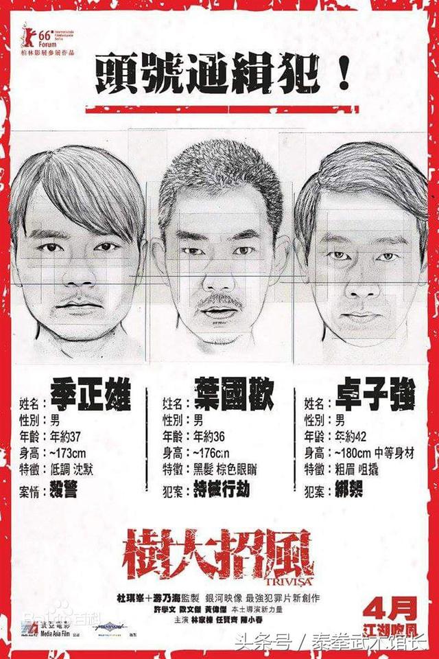 主 演:林家栋,任贤齐,陈小春,姜皓文,林雪,黄光亮 《树大招风》是寰亚电影制作有限公司和海润影业有限公司于2016年出品的警匪片。该片由银河映像制作,杜琪峰与游乃海监制,许学文、欧文杰、黄伟杰联合执导,林家栋、任贤齐、陈小春主演。 《树大招风》改编自1990年代香港“三大贼王”张子强、叶继欢与季炳雄的犯罪经历,讲述三人在同一家酒楼偶遇,策划合作大案的故事。影片于2016年4月7日在中国香港公映。