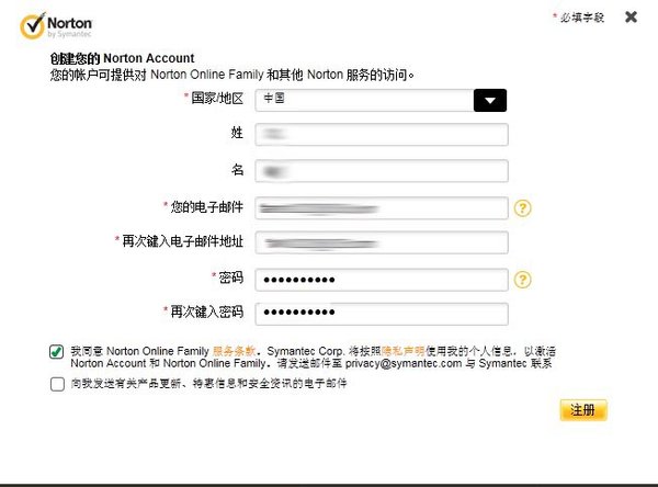 2.还是到下载的页面注册一个诺顿的帐号,只需要邮箱就可以了(https://onlinefamily.norton.com/familysafety/basicpremium.fs)
