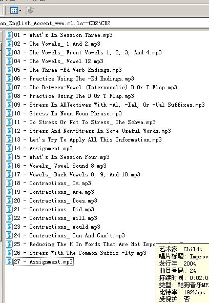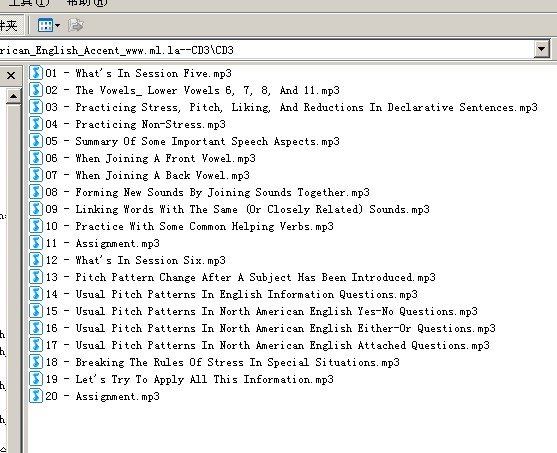 这本书在ebay卖21刀,也就是140元人民币. 更多的美国英语学习资料,请留意本人的博客 http://ml.la/blog 教育网(内网)24小时不间断供源, 10m带宽.不过本人是内网id 英文简介: Sound like a native English speaker in six easy lessons Even though you know the vocabulary and the endless grammar rules, you still find it difficult to pronounce English words correctly. This struggle with your new language can make communicating with native English speakers a frustrating experience for both you and them. Now you can gain confidence in your English skills and speak like an American with this focused, nonintimidating program. Improve Your American English Accent is an easy and enjoyable way to learn and master the most challenging American English speech characteristics, such as: The most troublesome of sixteen American English vowel sounds The duration of vowel sounds Differences in stressed and unstressed syllables and words How a sound is changed by the sounds that come before and after it Stress in words and phrases and how it influences timing The CDs present six 35-minute lessons, each one covering key obstacles faced by nonnative English speakers. Author Charlsie Childs is your own personal tutor, talking you through her proven methods for overcoming the tricks of English pronunciation. Accompanying the CDs is a booklet containing written pronunciation guidelines and transcriptions of the sounds, words, and sentences you encounter on the recording. From the Back CoverSound like a native English speaker in six easy lessons Even though you know the vocabulary and the endless grammar rules, you still find it difficult to pronounce English words correctly. This struggle with your new language can make communicating with native English speakers a frustrating experience for both you and them. Now you can gain confidence in your English skills and speak like an American with this focused, nonintimidating program. Improve Your American English Accent is an easy and enjoyable way to learn and master the most challenging American English speech characteristics, such as: The most troublesome of sixteen American English vowel sounds The duration of vowel sounds Differences in stressed and unstressed syllables and words How a sound is changed by the sounds that come before and after it Stress in words and phrases and how it influences timing The CDs present six 35-minute lessons, each one covering key obstacles faced by nonnative English speakers. Author Charlsie Childs is your own personal tutor, talking you through her proven methods for overcoming the tricks of English pronunciation. Accompanying the CDs is a booklet containing written pronunciation guidelines and transcriptions of the sounds, words, and sentences you encounter on the recording. 用google翻译是英文简介: 本地人一样简单的6个课讲英语的人,即使你知道的词汇和语法规则的无休止的声音,你仍难以英语单词的发音正确。这与你的新语言的斗争才能使通信与母语为英语的人你和他们令人沮丧的经历。现在你可以得到你的英语能力的信心,说话像一本集中,nonintimidating方案美国人。提高你的美式英语的发音是一个轻松愉快的方式来学习和掌握的最具挑战性的美式英语语音特色,如: 其中最棘手的十六个美国英语元音音音的元音异中强调,持续时间和非重读音节和单词的声音是如何通过声音来之前和之后的单词和短语和压力是如何影响它的时序变化 目前的CD六35分钟的经验教训,每一个涵盖由外来的英语面临的主要障碍。作者查尔西蔡尔兹是你自己的私人教师,她说,通过行之有效的方法,克服英语发音的技巧你。陪同CDS是一本小册子包含书面发音指引及声音,文字抄录和句子你遇到的录音。从后面本地人一样简单的6个课讲英语的人,即使你知道的词汇和语法规则CoverSound无休止的,你仍难以英语单词的发音正确。这与你的新语言的斗争才能使通信与母语为英语的人你和他们令人沮丧的经历。现在你可以得到你的英语能力的信心,说话像一本集中,nonintimidating方案美国人。提高你的美式英语的发音是一个轻松愉快的方式来学习和掌握的最具挑战性的美式英语语音特色,如: 其中最棘手的十六个美国英语元音音音的元音异中强调,持续时间和非重读音节和单词的声音是如何通过声音来之前和之后的单词和短语和压力是如何影响它的时序变化 目前的CD六35分钟的经验教训,每一个涵盖由外来的英语面临的主要障碍。作者查尔西蔡尔兹是你自己的私人教师,她说,通过行之有效的方法,克服英语发音的技巧你。陪同CDS是一本小册子包含书面发音指引及声音,文字抄录和句子你遇到的录音。